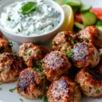 Delicious Greek turkey meatballs served with a refreshing tzatziki sauce, perfect for family dinners or meal prep.